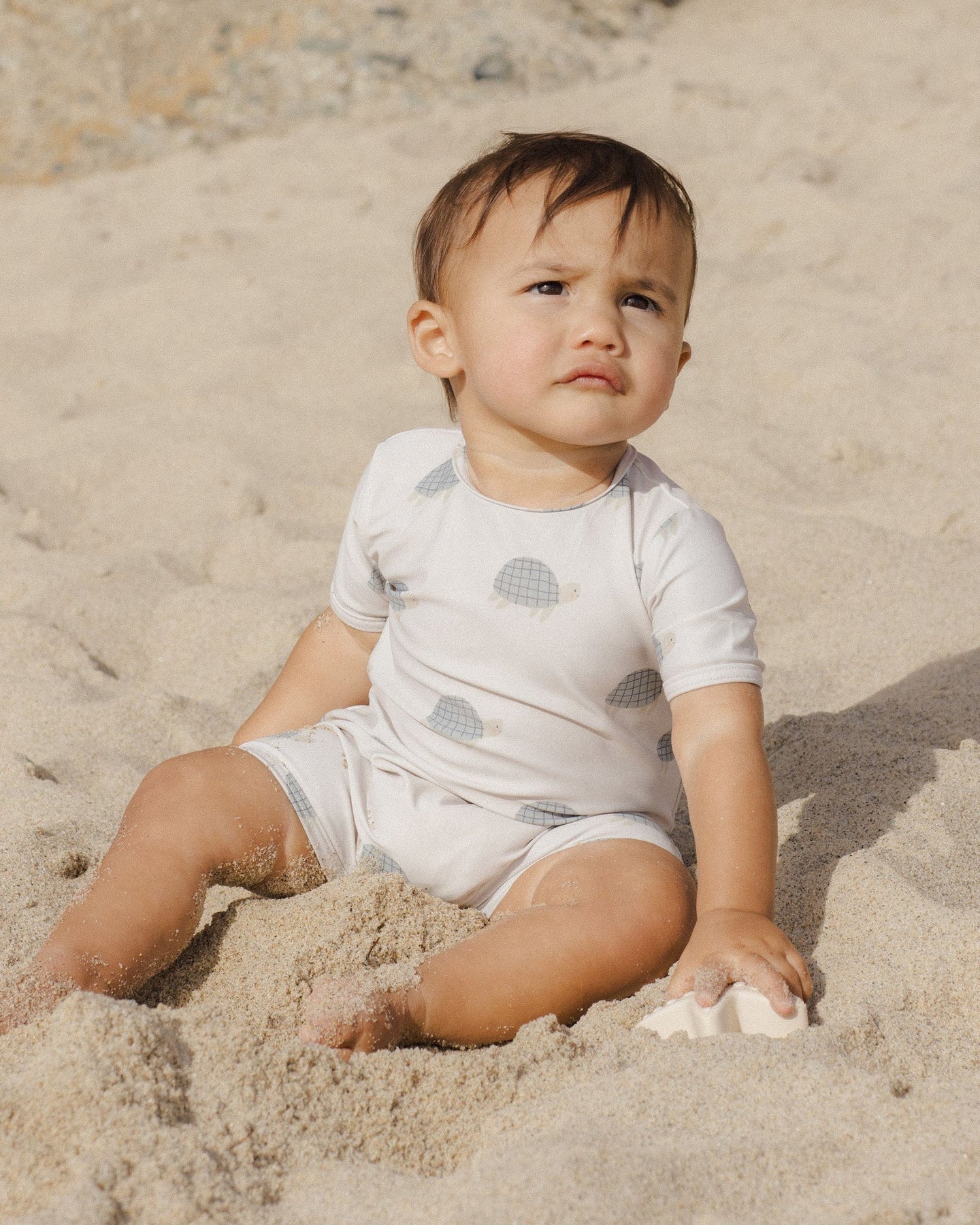 Maillot de bain barboteuse - Beige motif tortues - Rylee + Cru