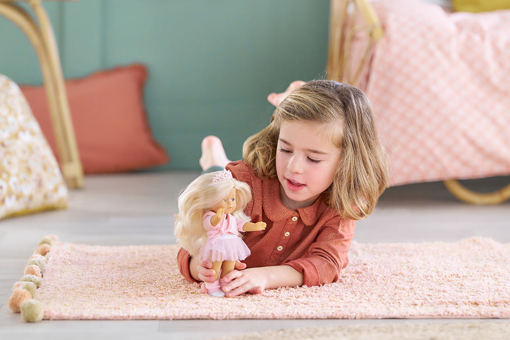 Découvrez Rosy, une poupée pleine de charme qui invite les enfants à créer des histoires féeriques et à s’amuser à coiffer ses longs cheveux blonds soyeux. Sa tenue de danse élégante et ses accessoires détaillés feront briller l’imagination des petites ballerines en herbe.