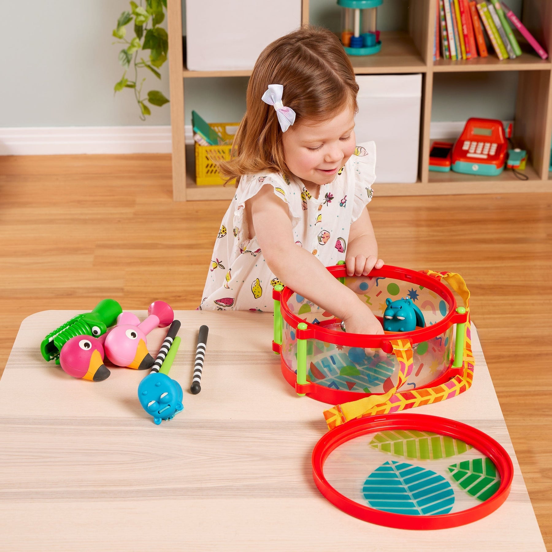 Cet ensemble coloré à thème animal propose 5 instruments amusants pour initier les tout-petits à la musique :