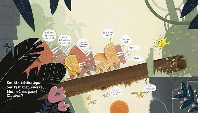 Cette fois, il a grignoté un énorme trou dans le livre des dinos… et le voilà propulsé en pleine préhistoire ! Mais attention : son passage sème la pagaille chez les tricératops, qui ne savent plus où donner de la tête.