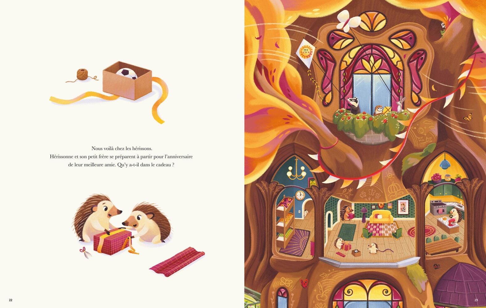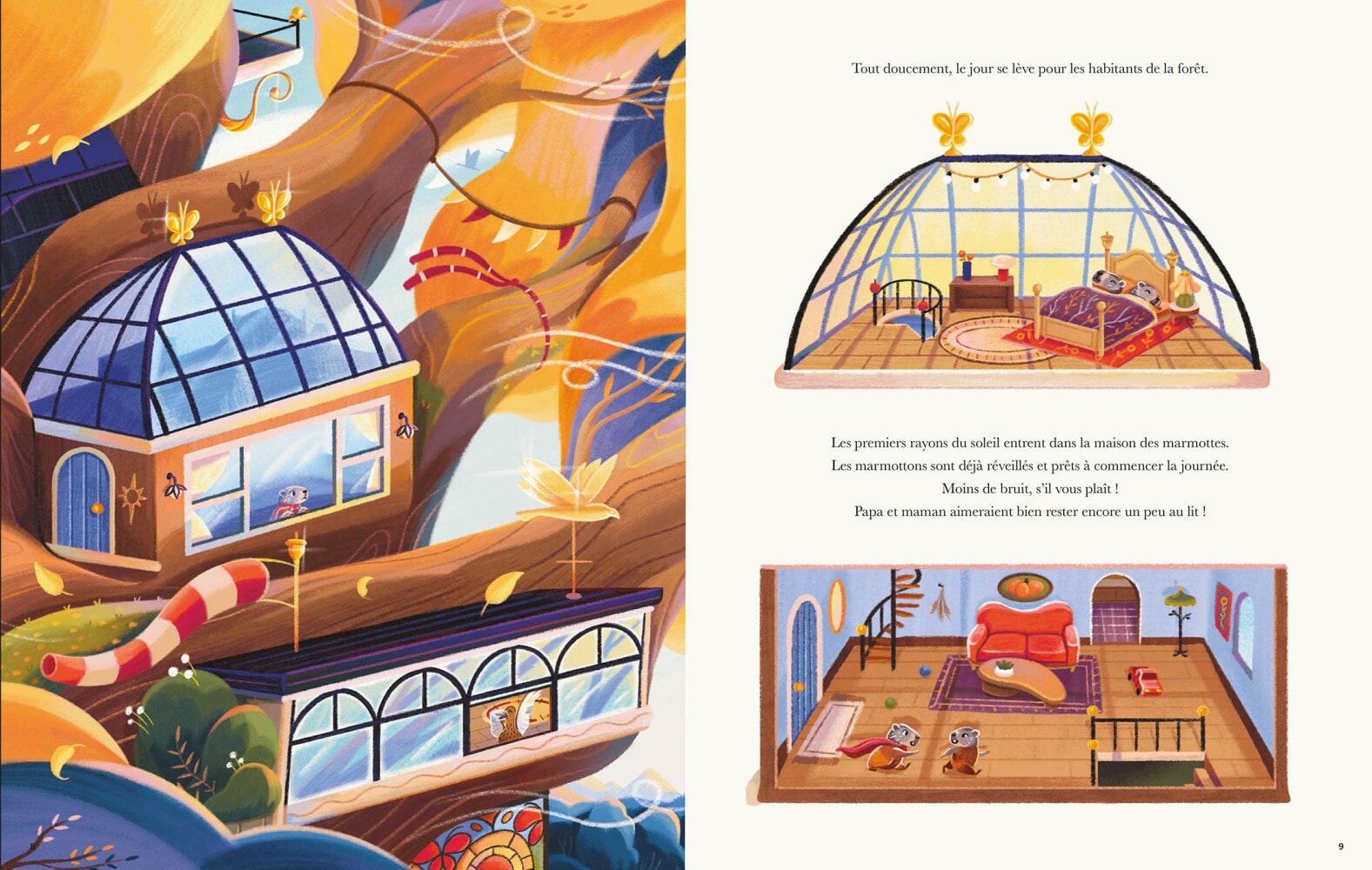Le matin se lève sur la forêt. De la famille Marmotte à la famille Loir, découvrez la vie insoupçonnée qui s'agite au coeur du grand chêne. Plongez dans ces cabanes merveilleuses qui fourmillent de détails et émerveillez-vous de ce monde enchanteur, abrité par l'ombre protectrice de son feuillage.