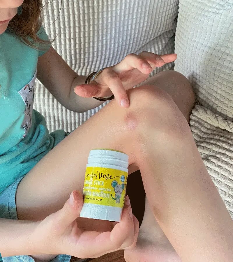 Guéri les bleus, les boss et toute irruption cutanée. Protège contre les agressions extérieures et très efficace comme après-soleil. Un incontournable dans votre pharmacie ! Bâton magique à l'arnica - Souris verte ARNICA.... Le bâton magique à l'arnica biologique a été développé suite à la demande d'un client français qui aimait les produits de Souris Verte et se demandait pourquoi il n'existait pas encore. Ils ont donc concocté un super produit qui guérit les bleus, les patrons et toutes les irruptions cutanées.
