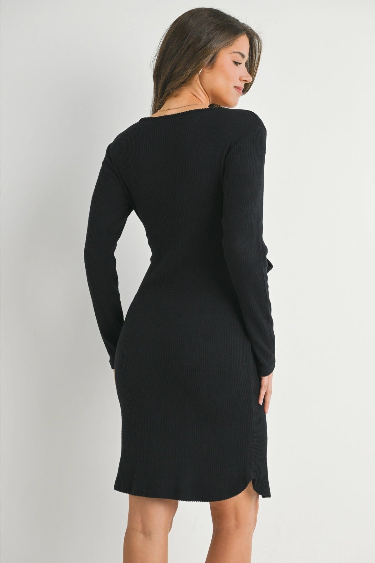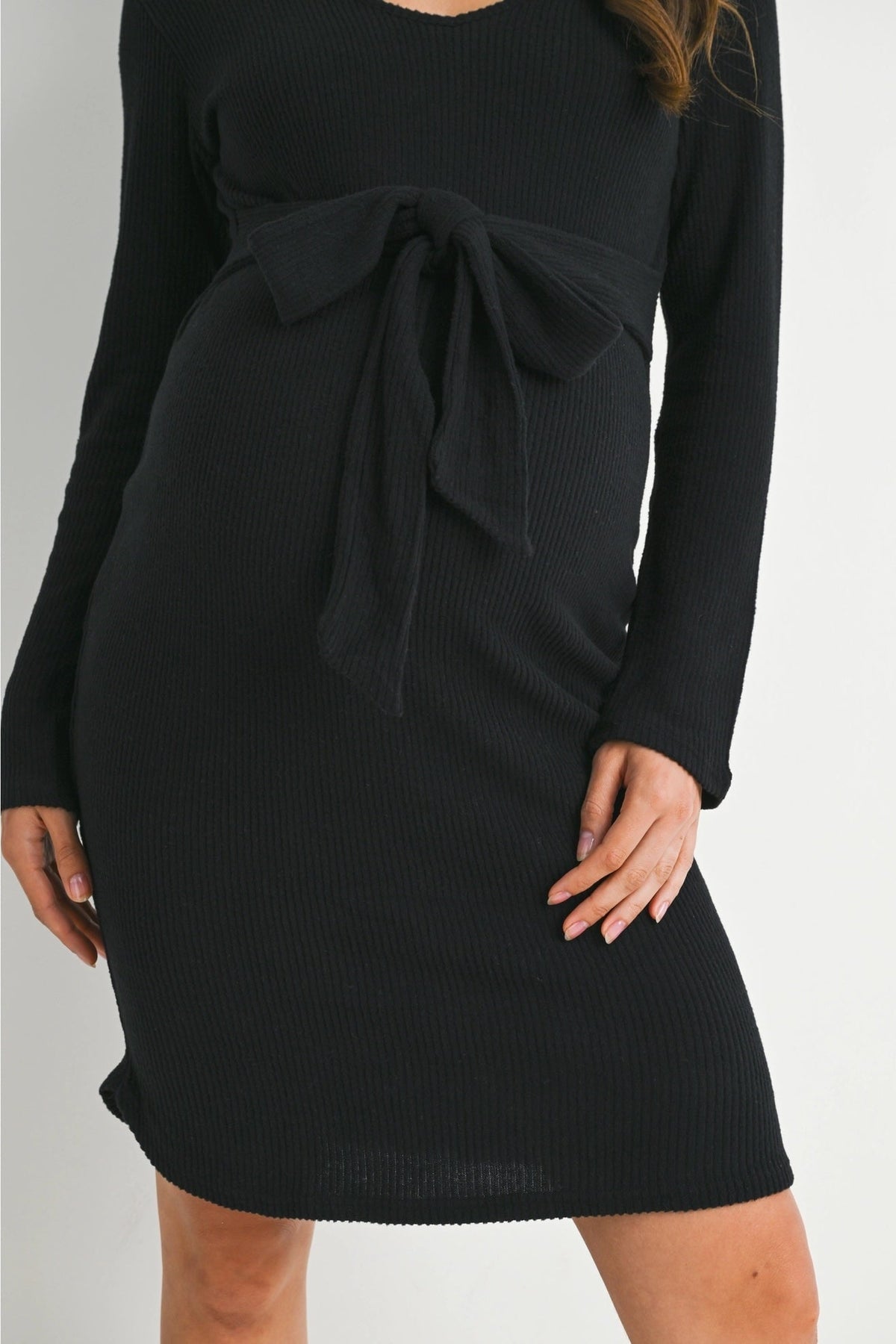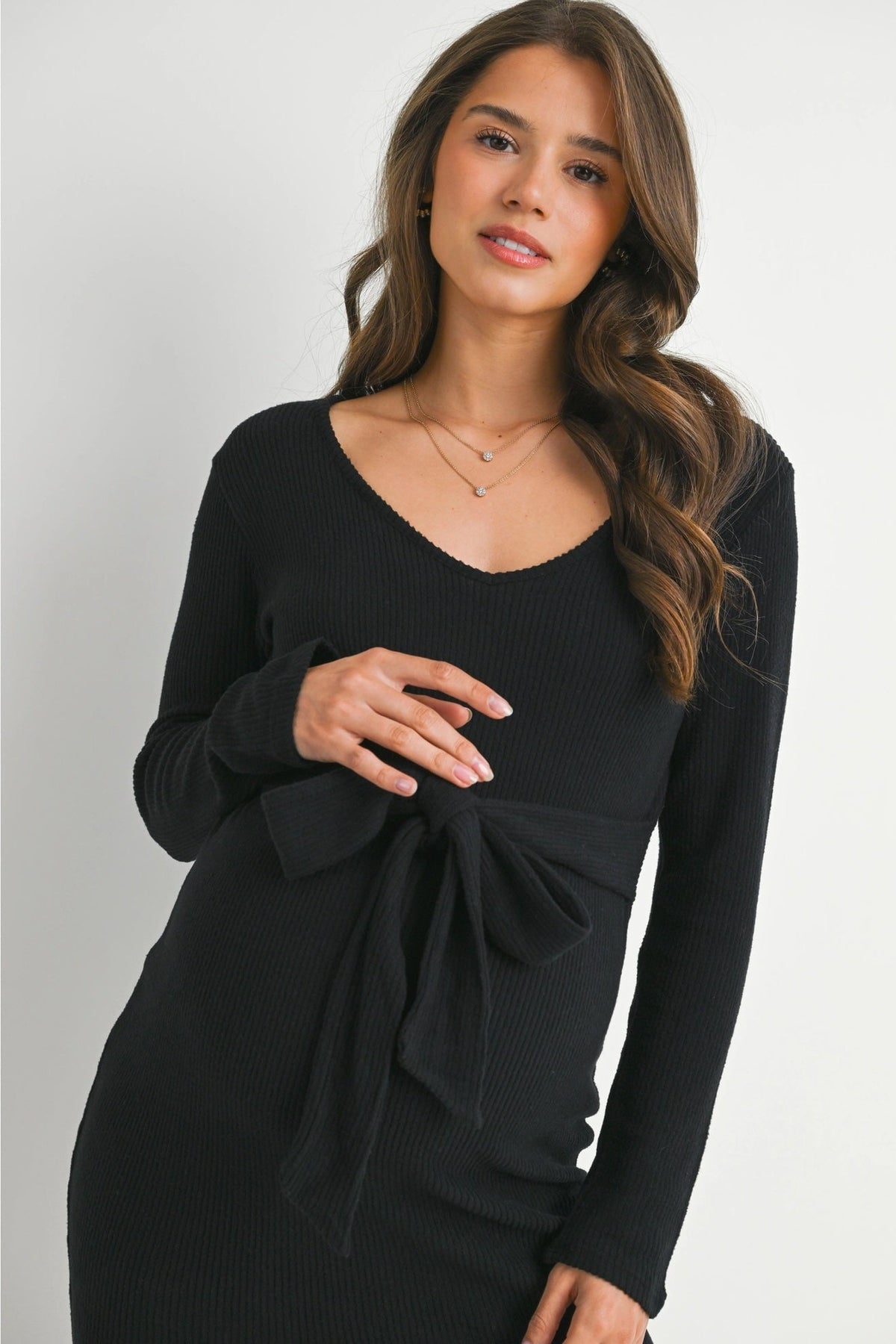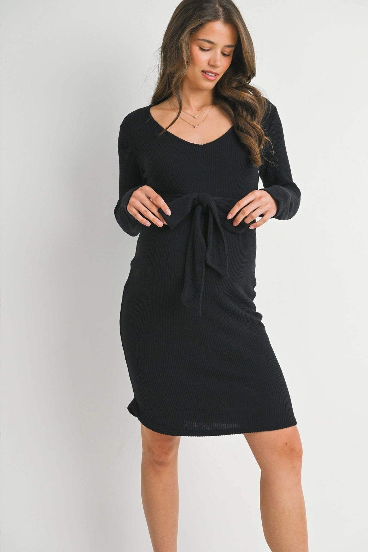 Robe de maternité Hello Miz col en V. Son tissu côtelé offre confort et chaleur tandis que son tissu extensible suivra votre ventre grandissant pour vous offrir toute l'aisance désiré.