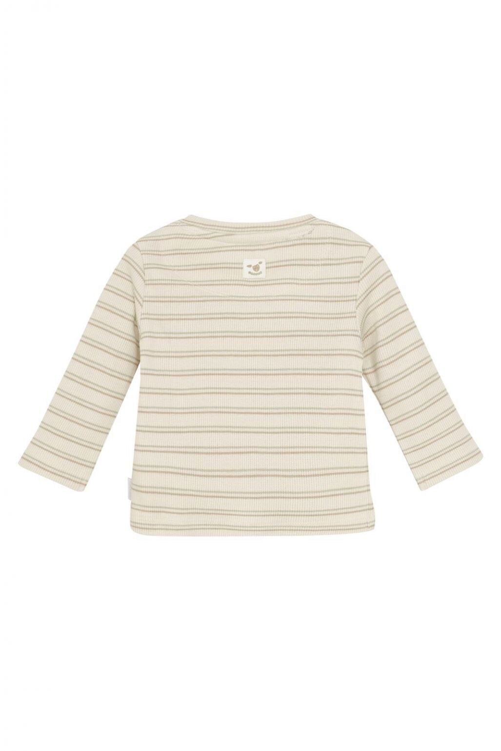 T-shirt à manches longues unisexe Sumer de Noppies Bébé, confectionné en coton certifié GOTS pour un confort naturel et responsable. Son imprimé rayé intégral apporte une touche intemporelle, tandis que le col rond avec bouton-pression facilite l’habillage.