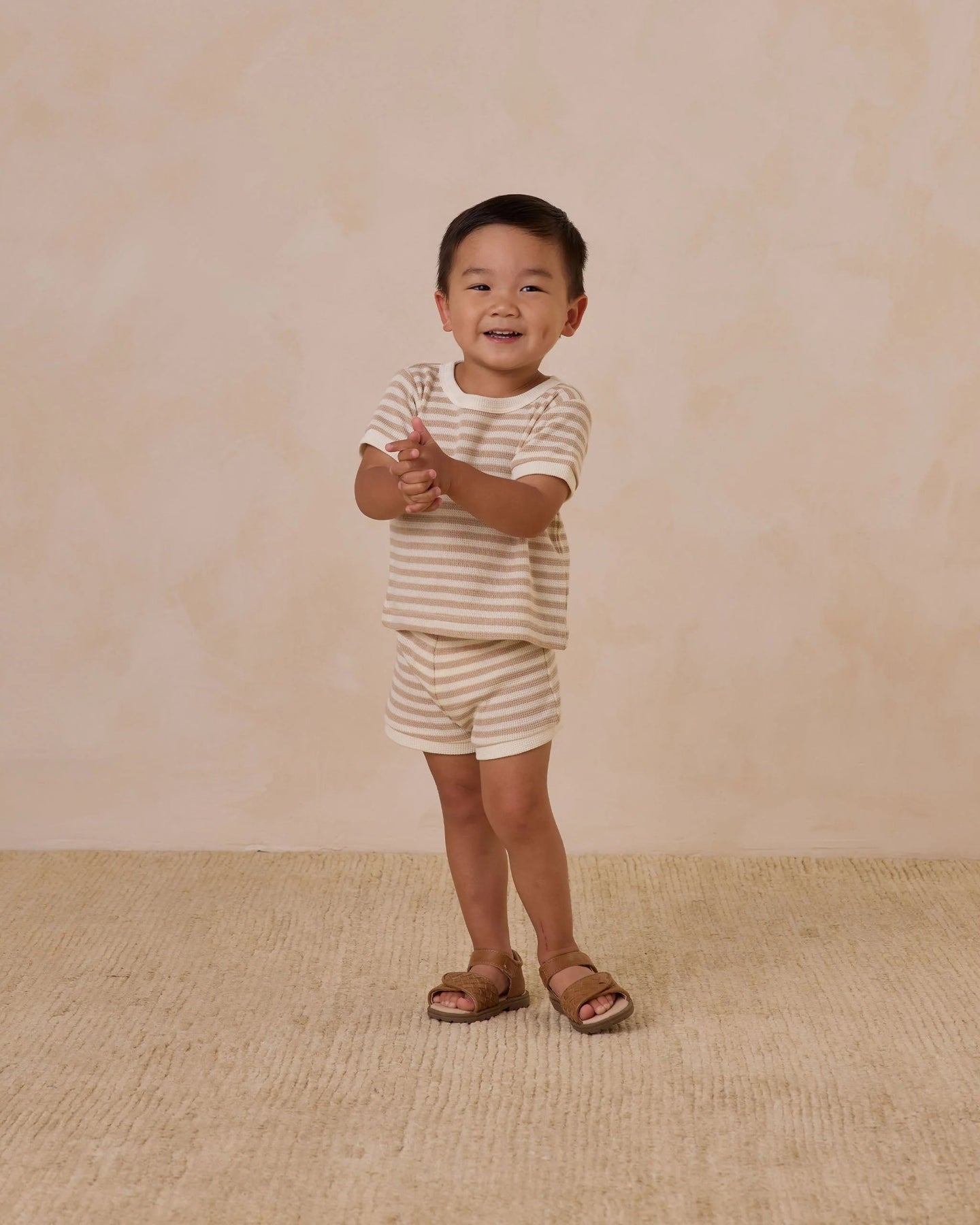 Respirant et ultra doux, cet ensemble composé d’un haut à manches courtes et d’un short assorti est parfait pour les journées de jeu et de détente.Ses rayures classiques s'accorderont facilement à la garde-robe déjà existante de votre tout-petit