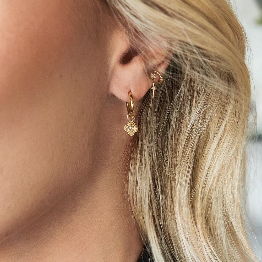 Boucles d’oreilles hypoallergéniques en acier inoxydable, parfaites pour le quotidien. Inspirées du trèfle emblématique, elles symbolisent la fortune et le destin. Élégantes et raffinées, elles vous accompagnent pour savourer chaque instant avec confiance et grâce.