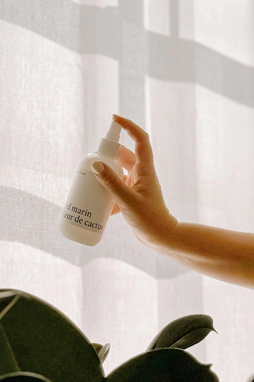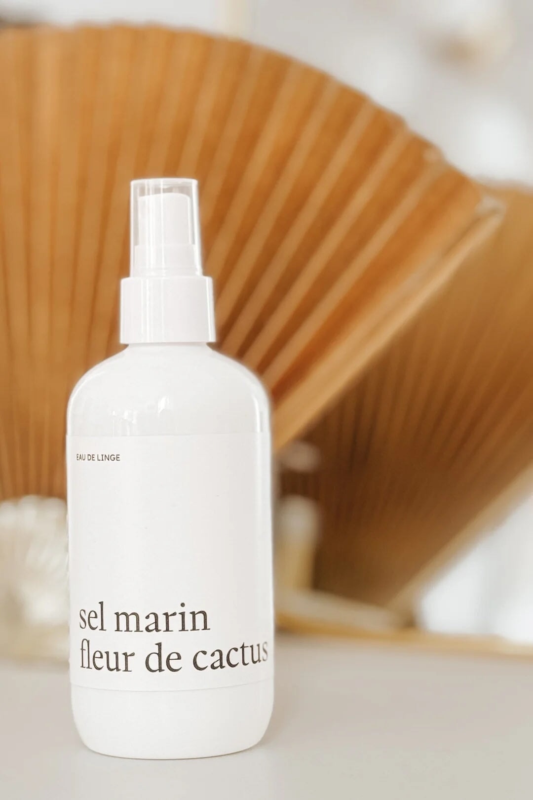L’eau de linge Sel marin & fleur de cactus vous transporte instantanément vers des rivages baignés de soleil, là où l’air salin rencontre la délicatesse florale des fleurs du désert.