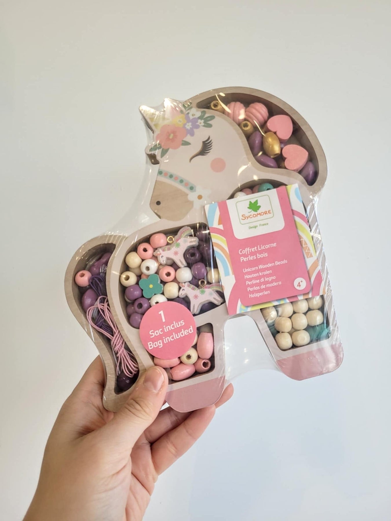 Un coffret original en forme de licorne contenant de jolies perles aux couleurs pastels pour créer de magnifiques bijoux: colliers, bracelets...