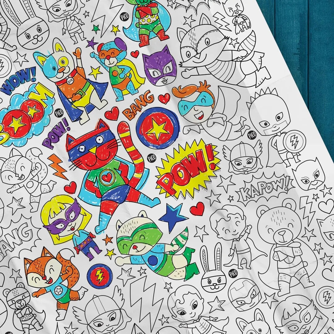 Coloriage géant super-héros Pico tatouage Mlle et Coco