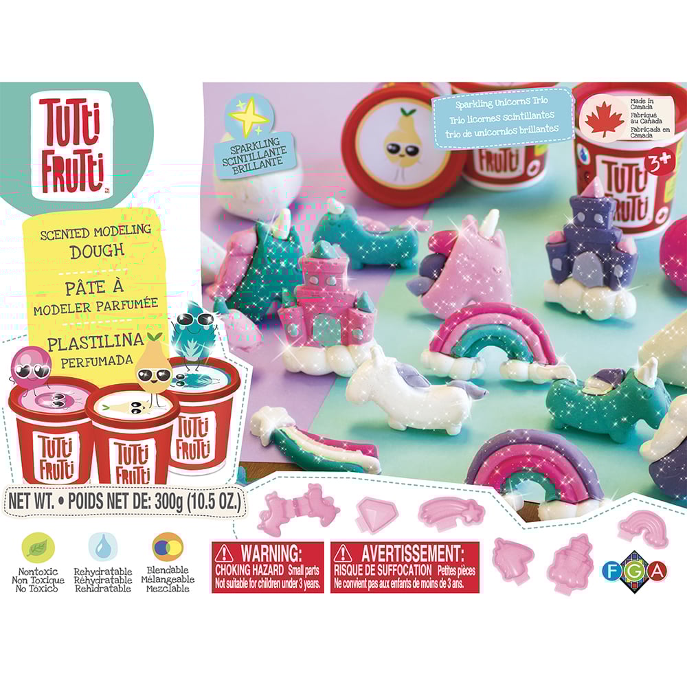 Plongez dans un univers féerique avec le Tutti Frutti Trio Licornes Scintillantes — un coffret créatif idéal pour éveiller l’imagination des enfants et stimuler leur créativité à travers le modelage.