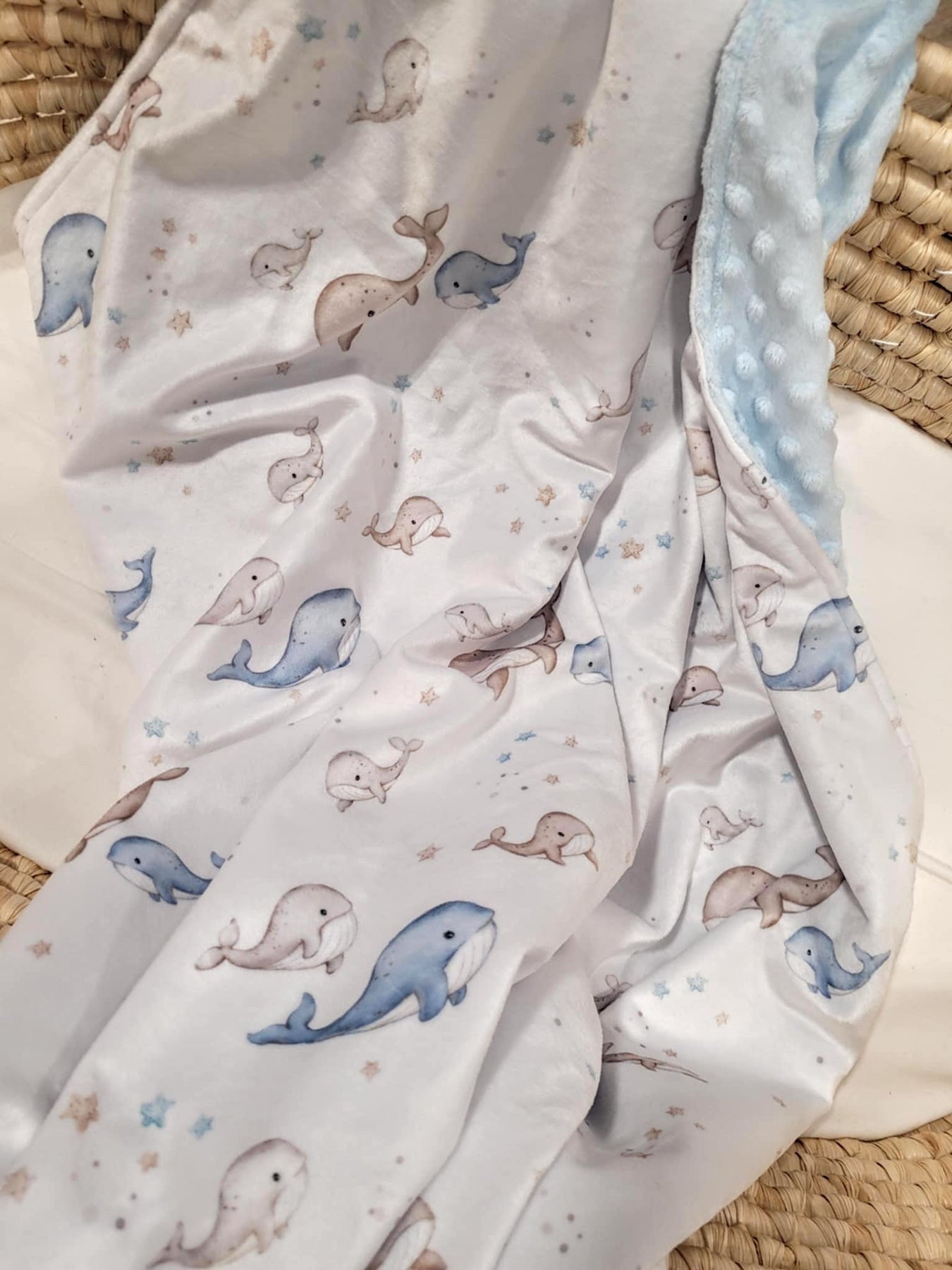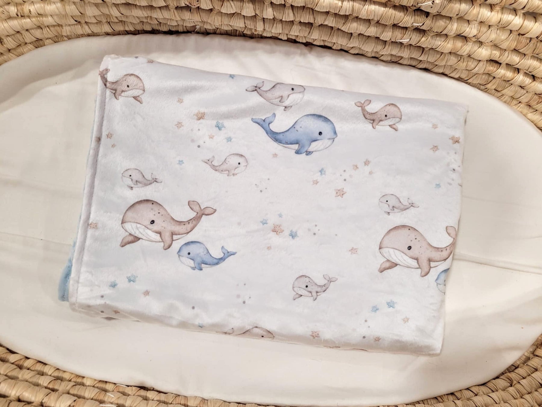Couverture de minky - Groupe de Baleines - Mlle et Coco