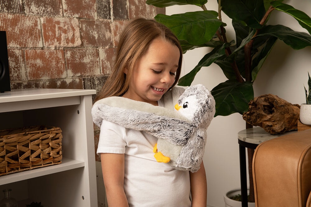 • Bras ou ailes enroulants uniques, qui agissent comme un tour de cou lesté apaisant — pour des câlins enveloppants incomparables.