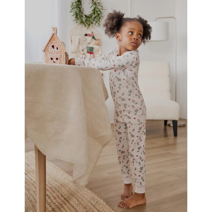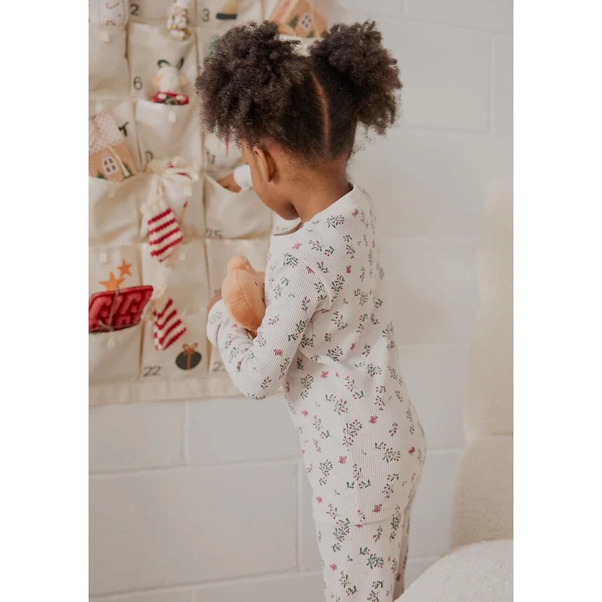 Ce pyjama crème au motif de gui allie style et confort pour la saison hivernale. Léger, respirant et agréablement chaud, il est parfait pour passer toute la journée en mode détente. Son encolure arrondie, sa taille élastiquée et ses poignets côtelés assurent un ajustement confortable et un habillage facile, que ce soit pour jouer, relaxer ou profiter d’une soirée cocooning.
