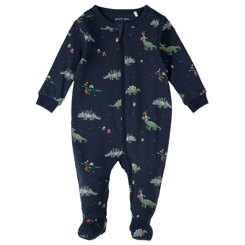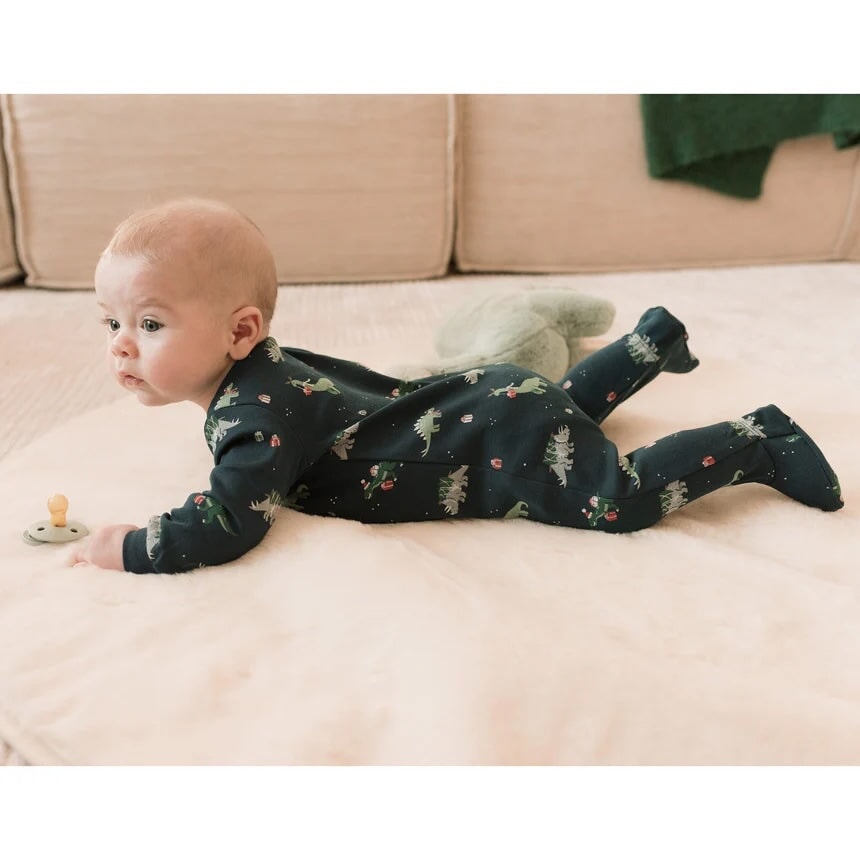 Noël et les dinosaures, une combinaison gagnante pour faire briller les yeux des tout-petits ! Ce pyjama dinosaure des Fêtes garde votre petit explorateur bien au chaud et à l’aise tout au long des célébrations familiales. Conçu avec des pieds intégrés pour protéger les petits orteils et une fermeture éclair à double sens, il facilite les changements nocturnes sans interrompre la magie des Fêtes. Prêt pour une nuit remplie de rêves, de clochettes et de rennes !