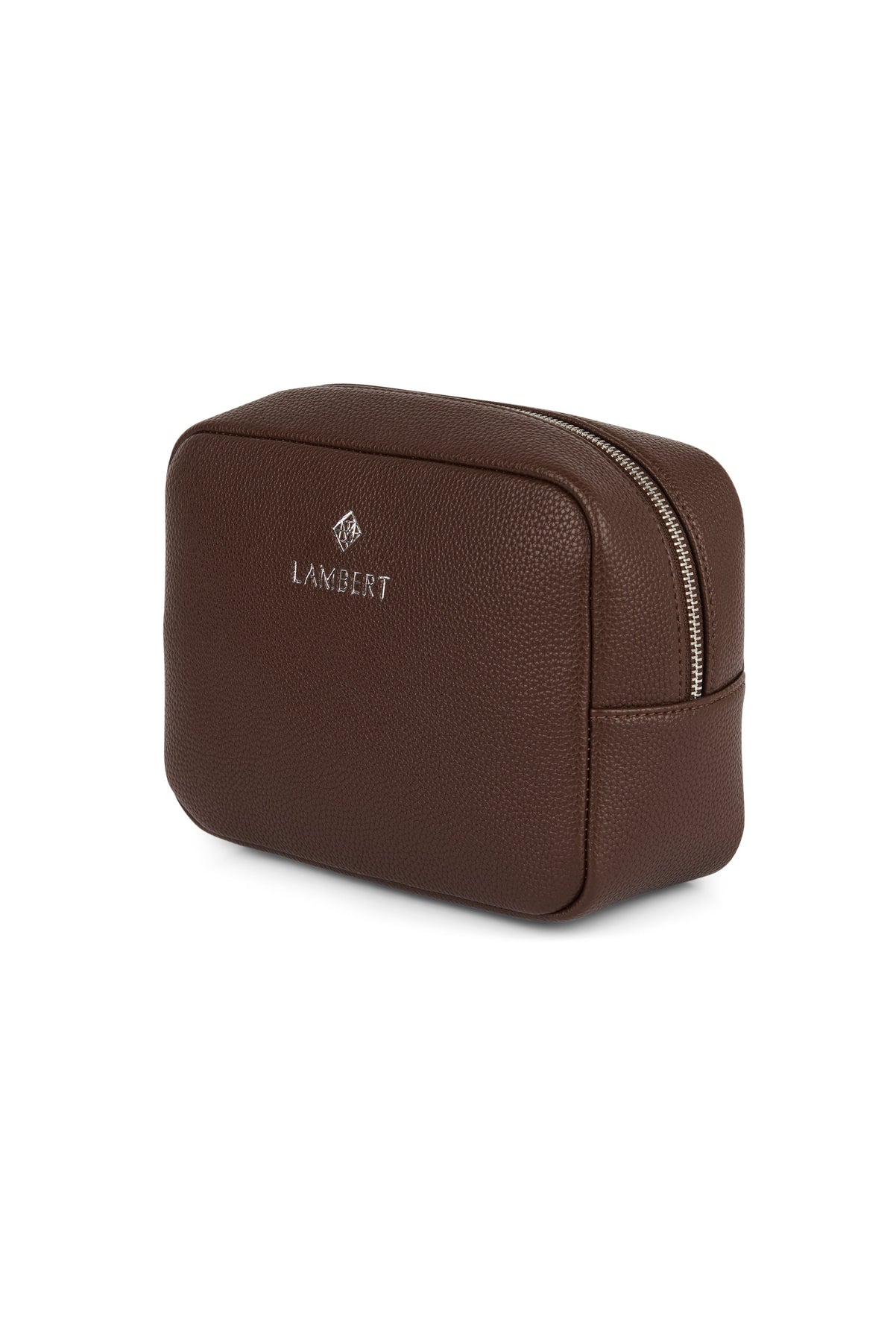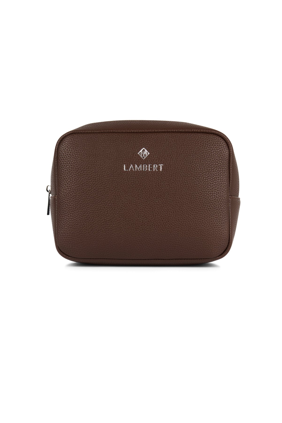 Trousse à maquillage en cuir vegan - Zoé chocolat - Lambert