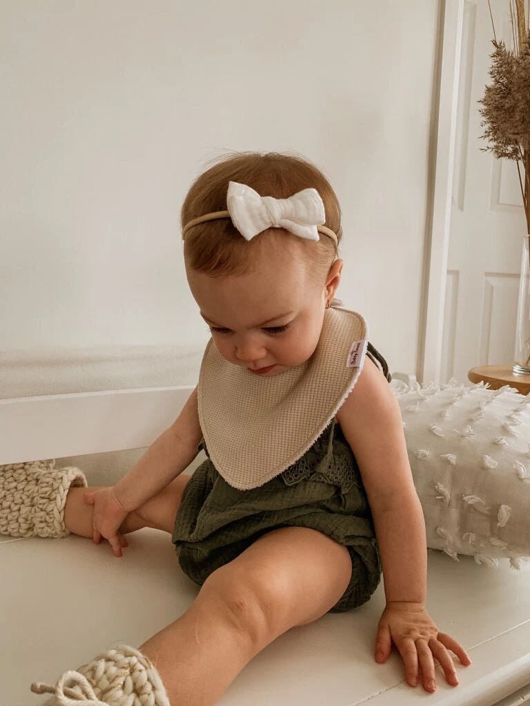 Ensemble de deux jolies mini-boucles en mousseline, montées sur un bandeau en coton. Parfait pour les bébés, tout-petits et petites filles.
