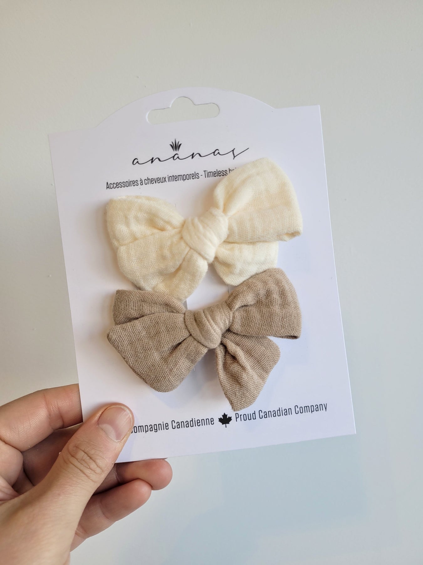 Boucle de mousseline sur pince - Ivoire et Beige - Ananas