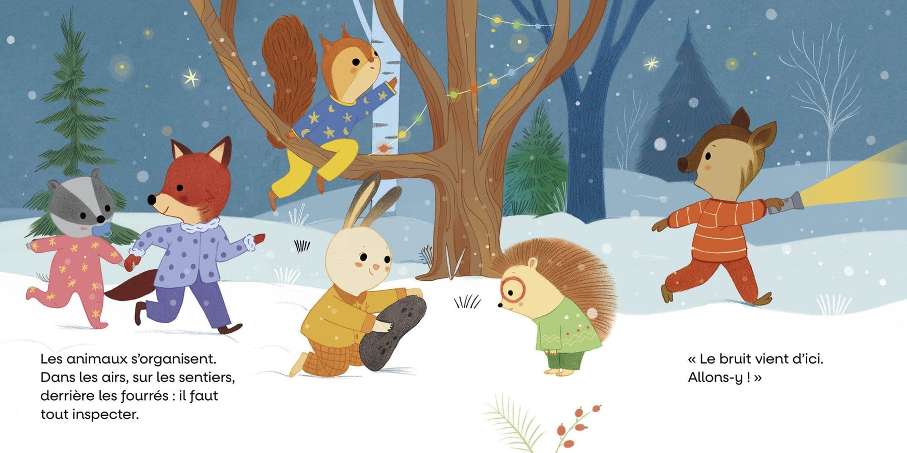 C’est la veille de Noël et tous les animaux sont au lit. Quand soudain, scrotch scrotch, un drôle de bruit résonne dans la forêt. Mais qu’est-ce que cela peut bien être?